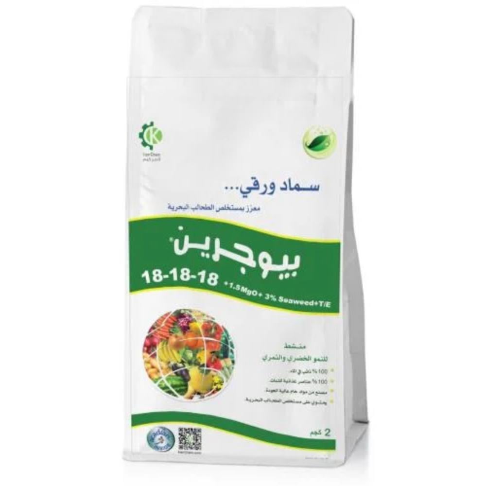بيوجرين Seaweed +T/E+18-18-18+1.5MgO+3% سماد ورقي يحتوى على تراكيز عالية و متوازنة من العناصر الغدائية للنبات،