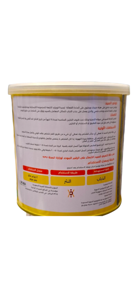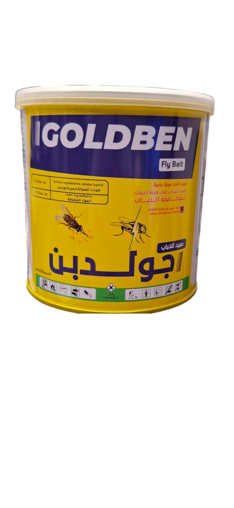 - جولدن بن مبيد حشري لمكافحة الذباب في شكل حبيبات قابلة للنثر وجاهز للإستخدام، ويحتوي على المادة الفعالة اميدا كلوبرايد..2.5%