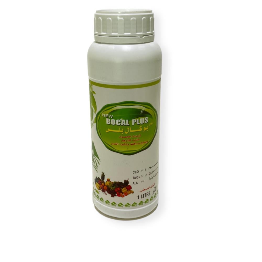 نيو بوكال بلس New Bocal Plus تتطور التغذية النباتية من خلال مركب نيو بوكال بلس فهو مركب يحتوي على الكالسيوم والبورون تم تخليبها على أحماض أمينية وكربوكسيلية مع وجود بولي سكاريد وذلك لكى يتم الاستفادة من العناصر وسهولة الامتصاص وخفض الفقد أثناء المعاملة. التركيب:- كالسيوم 15% CaO بورون 0.2% B أحماض امينية 5% A.A بولى سكاريد + أحماض كربوكسيلية المميزات:- - تصميم جديد في صناعة الأسمدة الورقية - يحتوي على الكالسيوم في صورة ذائبة ومحمل على أحماض أمينية لكي يسهل عملية الامتصاص والحركة داخل النبات. - نيو بوكال بلس يمنع ويقلل من تساقط الثمار والأزهار مع زيادة نسبة العقد - نيو بوكال بلس يزيد ويحسن من صلابة وثبات ثمار نباتات الخضر والفاكهة مما يزيد من قيمتها التسويقية والتخزينية - نيو بوكال بلس يعالج أعراض نقص الكالسيوم والبورون ويؤمن الحماية الكاملة ضد التشوهات والأمراض الفسيولوجية الناتجة عن نقص الكالسيوم أو البورون. - نيو بوكال بلس يزيد من نسبة العقد من خلال تحسين زيادة حيوية وخصوبة حبوب اللقاح - نيو بوكال بلس يحسن من مظهر وانتظام نمو المحاصيل الورقية - انتظام وصلابة وكبر حجم الأبصال ودرنات البطاطس وزيادة القدرة التخزينية - تحسين خواص الثمار التسويقية والتخزينية - يعمل على زيادة وزن الحبوب وامتلائها - يقلل من تساقط أوراق البرسيم بعد الحش - يقلل ويخفض من تساقط أو حتات التمور - يقلل ويخفض من الإصابات المرضية والحشرية بسبب زيادة سمك جدر الخلايا - نيو بوكال بلس علاج فعال لأمراض عفن الطرف الزهري في الطماطم والفلفل والباذنجان والقرعيات وكذلك يعالج مرض القلب الأجوف في البنجر والملفوف - يعمل كمنشط طبيعي لنمو النباتات وانقسام الخلايا - يعمل على تنشيط وتحسين نمو المجموع الجذري وتكوين كتلة جذرية نشطة الامتصاص الاستخدام:- نيو بوكال بلس يستخدم مع جميع نباتات محاصيل الخضر والفاكهة ونباتات الزينة والمسطحات الخضراء ومحاصيل الأعلاف وأشجار النخيل رشا على المجموع الخضري كما يمكن استخدامه مع ماء الري - من خلال برنامج رش دوري بمعدل 2-3 لتر /1000 لتر على عمر 4 ورقات أو بعد الشتل بأسبوع وتكرر مرة كل 21 يوم - عند علاج أعراض نقص الكالسيوم يستخدم بمعدل 3-4 لتر /1000 لتر ماء - يمكن أن يستخدم مع ماء الري بمعدل 5 لتر للهكتار