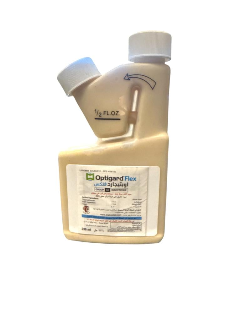 - أوبتيجارد فليكس هو مبيد حشري على هيئة مركز معلق (SC) لمعاملات الرش ذو الاثر المتبقي ، يحتوي على المادة الفعالة (ثياميثوكسام) التي تتبع المجموعة الكيميائي (نيونيكوتينويد). يستخدم اوبتيجارد فلكس لمكافحة بق الفراش، الصراصير، جميع أنواع الخنافس و أهمها خنفساء الظلام، الذباب، صراصير الليل، النمل، يستخدم للرش المباشر وله أثر متبقي.