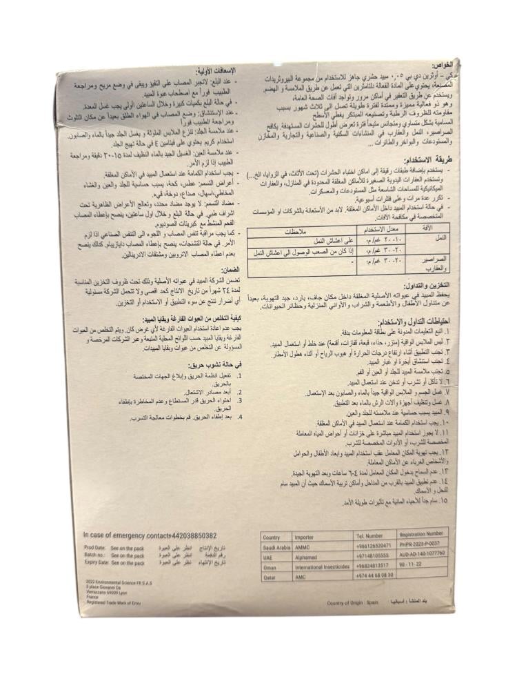- ذو فعالية مميزة وممتدة لفترة طويلة تصل إلى 3 أشهر بسبب مقاومته للظروف الرطبة.