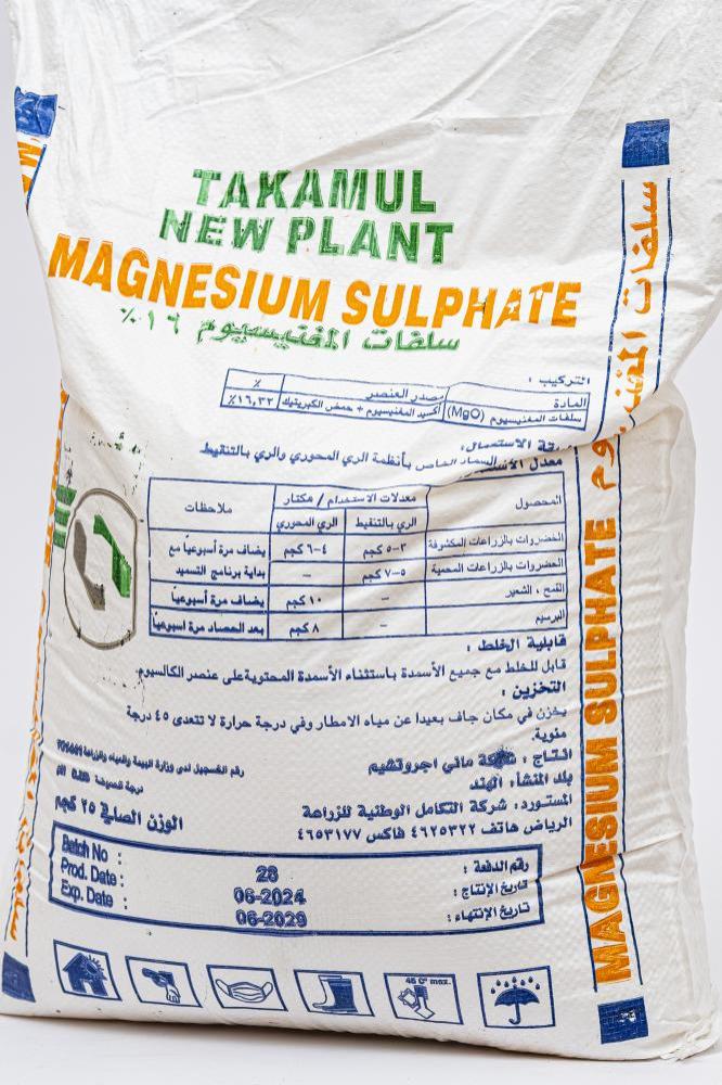 يحتوي على %16 أوكسيد المغنيسيوم و %32 كبريت ، يضاف للنبات عند ظهور اعراض نقص المغنيسيوم ليعطي الأوراق لونها الأخضر الطبيعي وبالتالي عملية تمثيل ضوئي مثالية ما يزيد من نشاط أوراق النبات لتنتج طاقة أكبر تساعد في تحسين نمو النبات ، كما يساعد على اعطاء الثمرة لونها الأخضر الغامق وفي الباذنجان اللون الأسود اللامع.