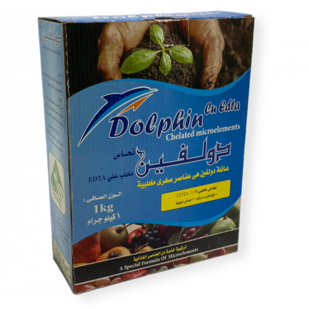 دولفين نحاس سماد ورقى وارضى فى صورة مسحوق تام الذوبان يحتوي على تركيز عالي من عنصر النحاس الهام للنبات في صورة مخلبية يحقق اقصى استفادة للنبات من هذا العنصر.